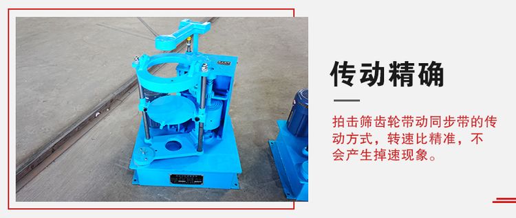 拍擊篩齒輪帶動同步帶的傳動方式,轉速比精準,不會產(chǎn)生掉速現(xiàn)象。