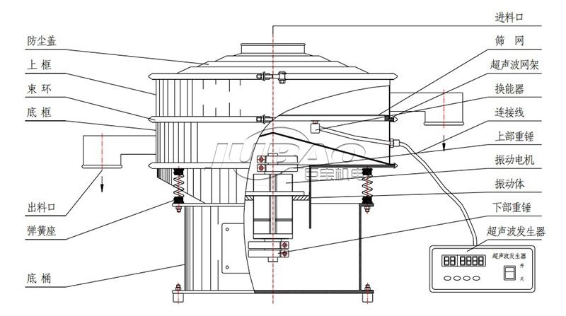 外置換能器和篩框接觸緊密密封效果好,可以有效的避免物料進入換能器從而影響使用壽命。