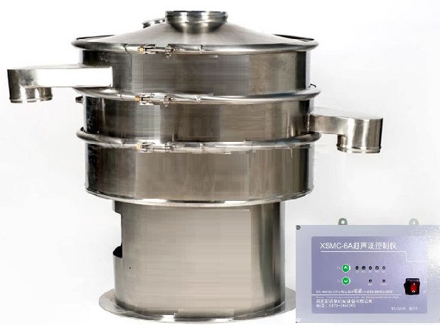 超聲波振動篩是將220V、50Hz或110V、60Hz電能轉(zhuǎn)化為36KHz的高頻電能,輸入超聲換能器,將其變成36KHz機械振動,產(chǎn)生的功率超聲波使篩網(wǎng)作高頻振動。篩網(wǎng)上的物料在作低頻旋振運動的同時,疊加上超聲振動,既可防止網(wǎng)孔堵塞,又可使篩分機提高產(chǎn)量和質(zhì)量,從而達到快速篩分和清網(wǎng)的目的,使超微細粉篩分成為易事。該系統(tǒng)在傳統(tǒng)的振動篩基礎上在篩網(wǎng)上引入一個低振幅、高頻率的超聲振動波(機械波),以改變超微細分體的篩分性能。特別適合高附加值精細分體的用戶使用。