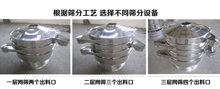 任何顆粒、粉末、粘液一定范圍內(nèi)均可篩選。篩分細(xì)至500目或0.028mm, 過(guò)濾小可至5微米。分級(jí)篩選,可篩一至五層篩網(wǎng),能同時(shí)進(jìn)行二至六個(gè)等級(jí)的分選或過(guò)濾。
