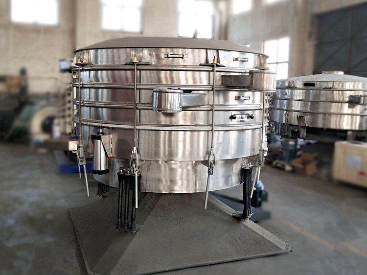 搖擺篩是一種仿人工搖動的低頻旋振篩,其原理是:瞬時運動為沿徑向的位移和以此位移為軸的圓周運動的合成(螺旋運動),即可調(diào)節(jié)偏心距的激振器產(chǎn)生了非線性三維運動,物料也產(chǎn)生同樣的近似手動作業(yè)的運動,從而達到篩分之目的,再配合篩分附件可獲得更加理想的篩分效果,適合于圓形狀、圓柱狀、片狀、乃至 于規(guī)則形狀易堵網(wǎng)且需要精細篩分的物料,是為了滿足大產(chǎn)量、高密度篩分用戶而設計的一種篩分設備,與一般圓形篩相比,它的篩分精度、效率、產(chǎn)量、篩網(wǎng)壽命能提高5-10倍,符合所有精細與超細范圍的粉末與微粒狀物料,特別適合難以處理的物料。還可單層或多層篩分,一次可篩分至6個粒度。搖擺篩適合精細和超細范圍的粉末和微粒狀物料,產(chǎn)量大、精度高