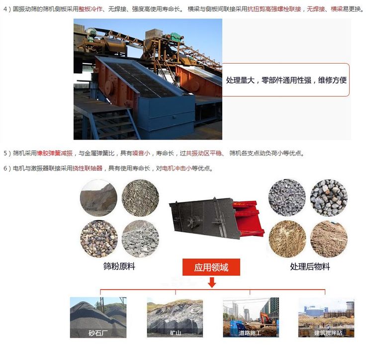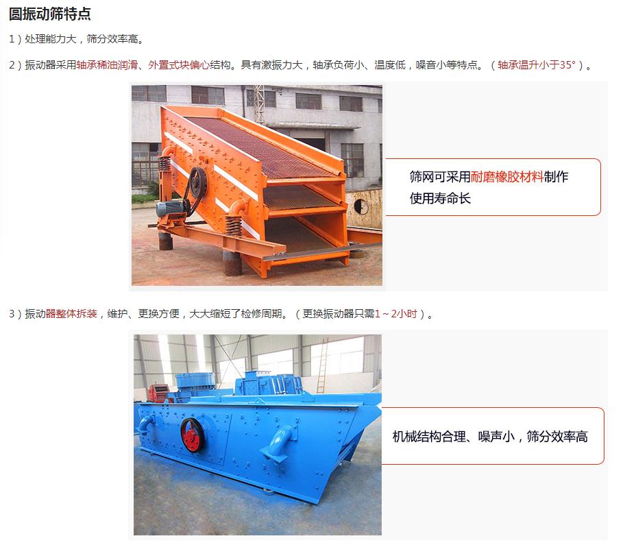 5.采用小振幅,高頻率,大傾角結(jié)構(gòu),使該機(jī)篩分效率高、處理棒。