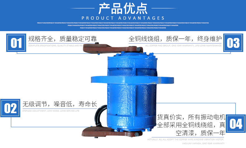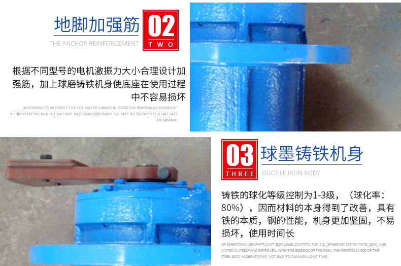 6、振泰立式振動電機(jī)選用特制耐震軸承,可靠性高,動力搶進(jìn)。