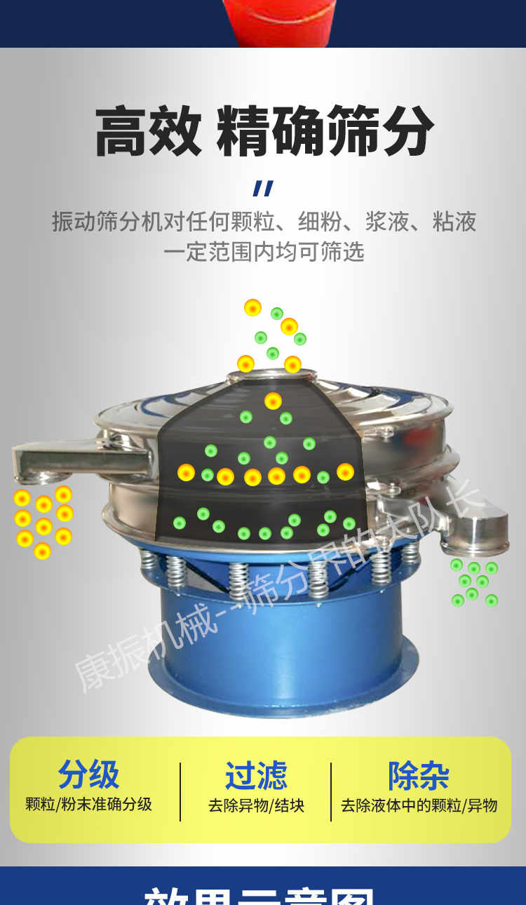 2、去液體:本設(shè)備單層、多層使用,可十分有效地處理固體、液體的混合物料??焖賹?shí)現(xiàn)固液分離,并篩選過(guò)濾出不同的目的物料。